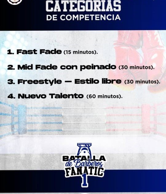 Durante la esperada jornada se desarrollarán 4 categorías de competencia: Fast Fade (15 minutos), Mid Fade con peinado (30 minutos), Freestyle -Estilo Libre (30 minutos) y Nuevo Talento (60 minutos).