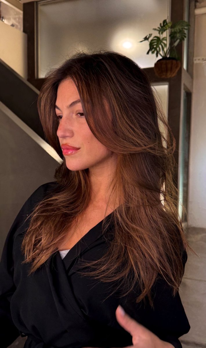 Moca Mousse es una técnica de color desarrollada por Jara que combina intención, control de temperatura y lectura de identidad para crear tonos con movimiento propio. Esta reversión veraniega propone un glow suave, más orgánico, que acompaña el estilo de Stefy y potencia su presencia visual sin alterar su esencia.