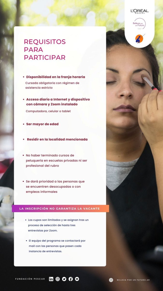 Para más información sobre el programa y el proceso de inscripción, visitar el perfil de Instagram @bellezaporunfuturo.ar o @fundacionpescar.