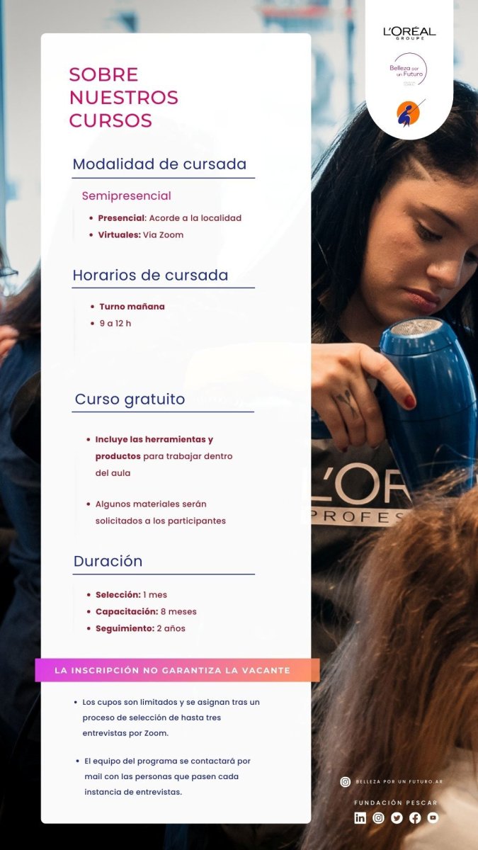 Belleza por un Futuro, la iniciativa de la Fundación L’Oréal presente en más de 20 países y desarrollada en Argentina junto a L’Oréal Groupe y Fundación Pescar, anuncia la apertura de inscripciones para una nueva edición del curso de peluquería en su sede de Barracas (CABA).