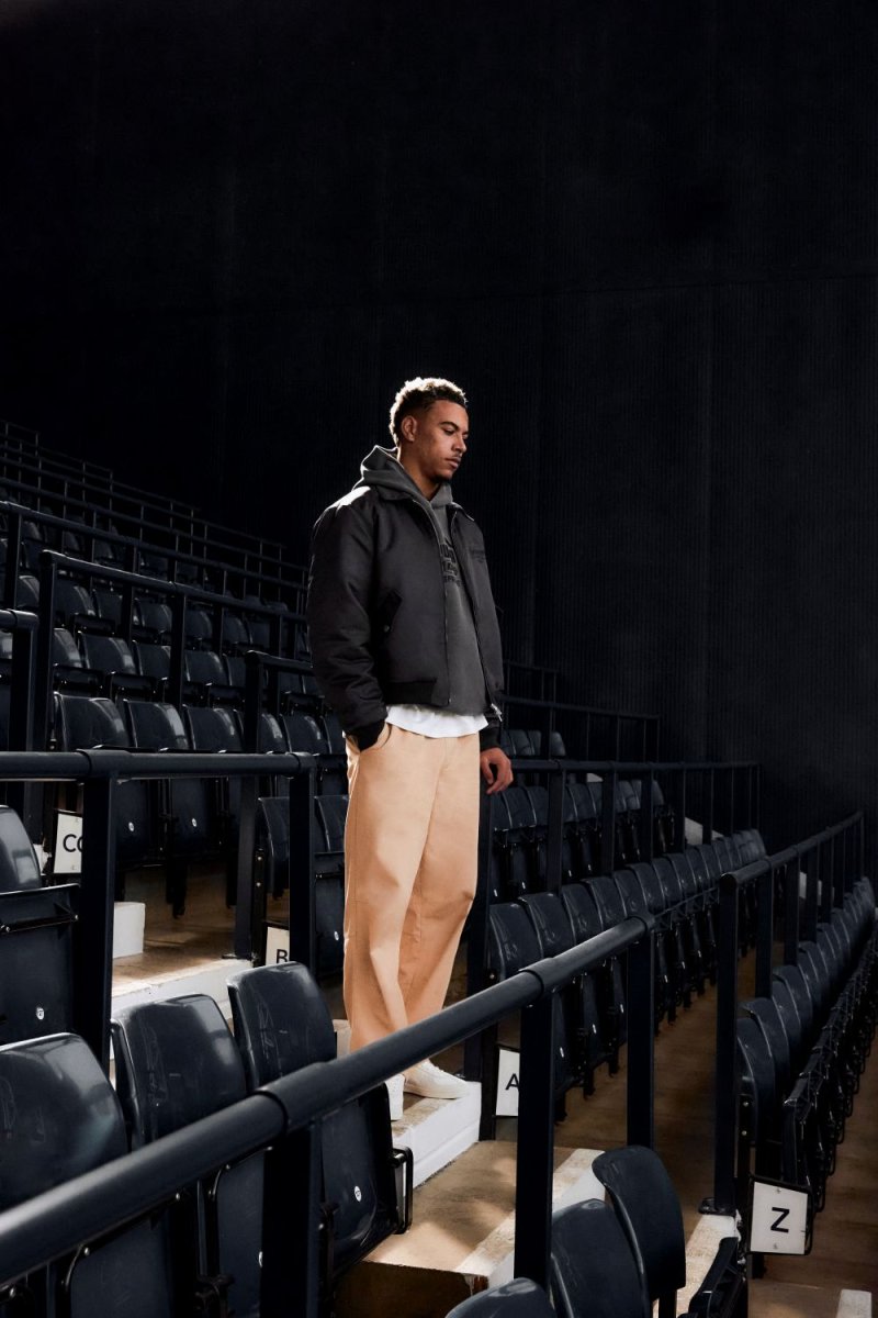 Con una fuerte impronta del estilo terrace, la colección equilibra la estética del streetwear con guiños a la tradición de los días de partido. Se destacan una campera utilitaria inspirada en los clásicos anoraks, con bolsillo frontal protagonista, confeccionada en sarga resistente; y una bomber negra de líneas limpias, con cuello camisero y el logo bordado en pecho y espalda.