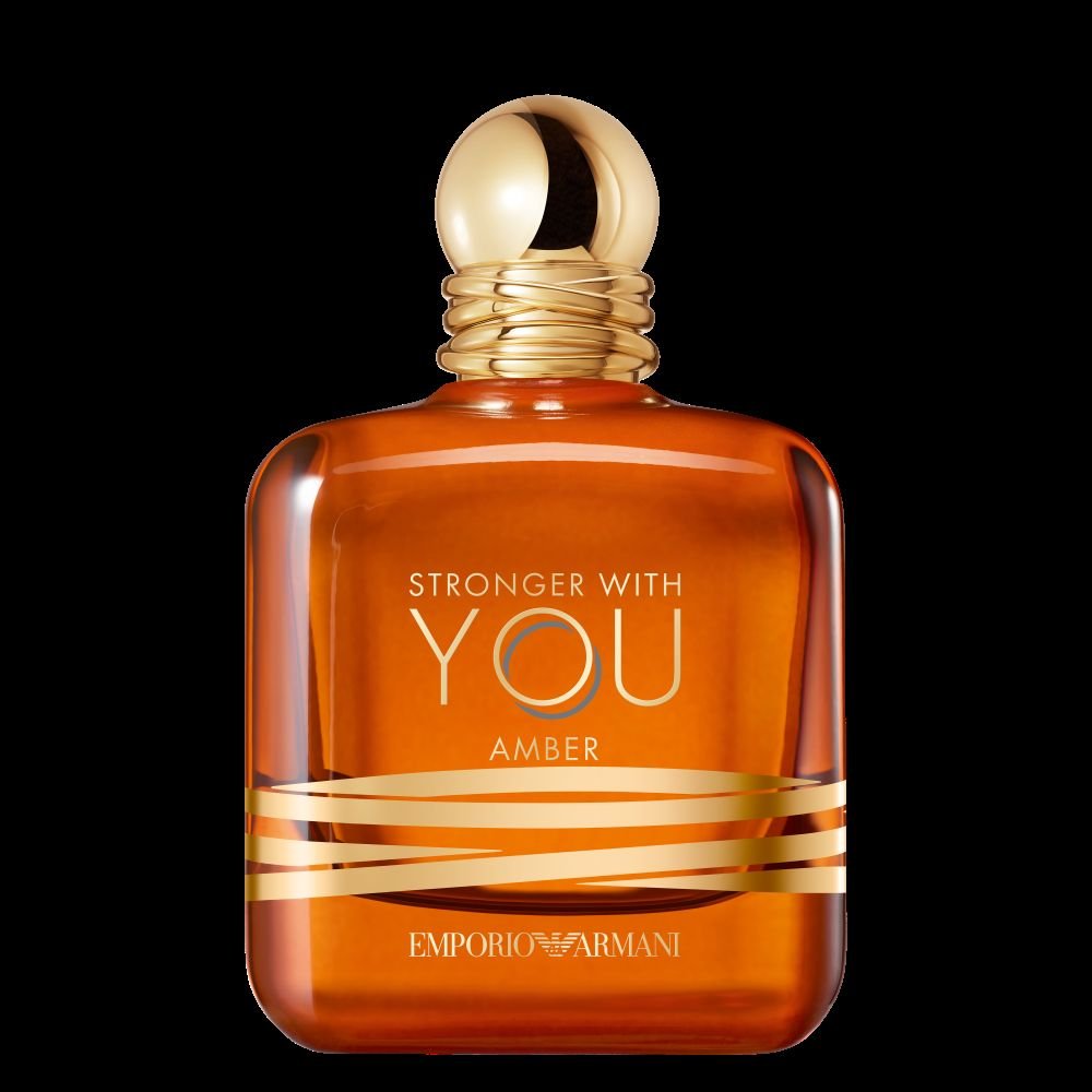 Stronger With You Ambar, Giorgio Armani: Un fougère ambarado inspirado en la luz eterna de la piedra de ámbar. Ofrece una interpretación más cálida, sensual y profunda. Combina un acorde de ámbar en el corazón con notas balsámicas, salida de lavanda fresca de Provenza obtenida de forma sostenible y una infusión de Vainilla Bourbon. El resultado: una fragancia masculina, magnética y envolvente, donde la frescura aromática y las especias cálidas resaltan una sensualidad moderna y persistente.