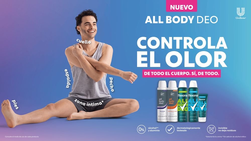 A partir de esta tendencia global y de un profundo análisis de hábitos de consumo, Unilever presenta los primeros desodorantes “All Body” para todo el cuerpo disponibles bajo sus marcas Rexona, Dove y Dove Men+Care. De esta forma, la compañía se anticipa a las necesidades, redefine los estándares del cuidado personal integral y lo que se entiende por desodorización.
