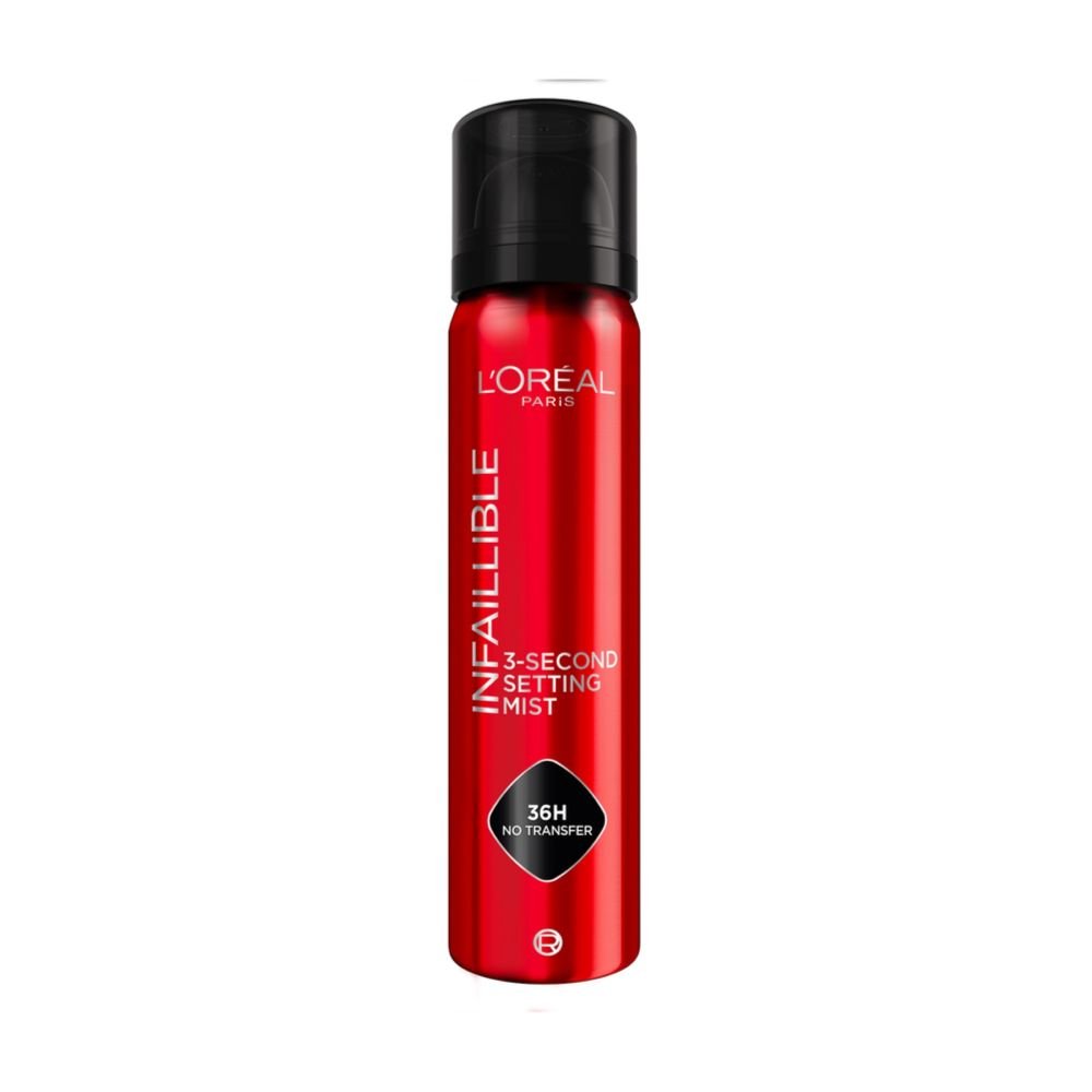 L'Oréal Paris | Fijador de Maquillaje Infaillible Setting Spray: Sella el look en sólo 3 segundos y lo mantiene intacto hasta por 36h. Su bruma ultrafina deja una sensación ligera en la piel, sin marcas de agua ni gotas, solo un acabado fresco, natural y resistente, a prueba de transferencias, calor, sudor y agua.