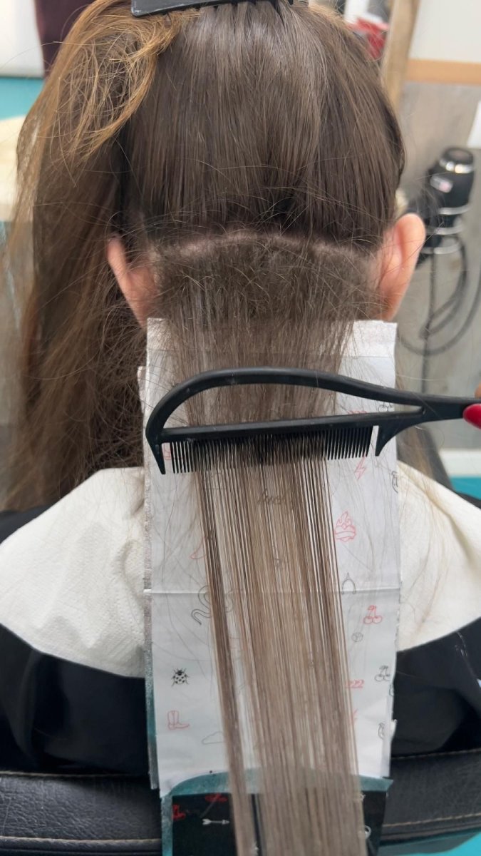 -Seleccionar mechas finas con peine de precisión dejando transparencias uniformes.