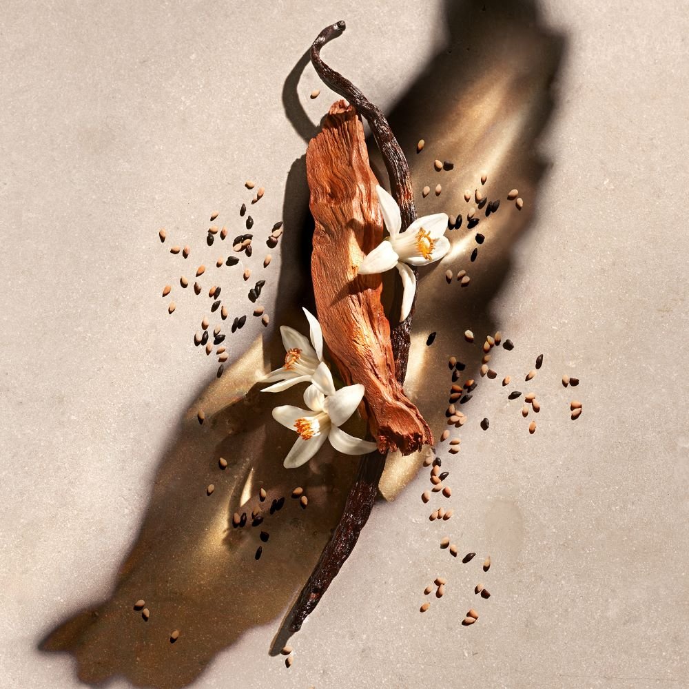 En materia de innovación, su emblemático frasco es recargable. En un extremo de las alas, el dispensador se desenrosca para dejar espacio a la recarga. En cuanto a la fragancia, su fórmula vegana celebra los ingredientes de origen natural (89%), cultivados de forma responsable, como la vainilla, el absoluto de azahar y el sándalo. También se han favorecido procesos de extracción innovadores y más sostenibles. Para los acordes de sésamo blanco y jengibre, la extracción con CO2, uno de los métodos más avanzados, revela las cualidades olfativas de los ingredientes en su forma más pura.